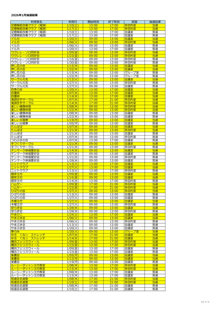 2026.1月 貸会議室等の抽選結果について